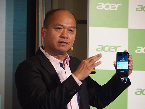 10月21日、台湾のPCメーカーであるエイサーが、SIMフリースマートフォン(スマホ)の日本市場に参入すると発表した。発表会では同社のスマホを かたどったオリジナルのクッキーを記者に配布する、という力の入れよう。S.T.リュウ スマートプロダクト ビジネスグループプレジデントは、「この2年ほどスマートデバイスビジネスの重点エリアを西欧、中南米、東南アジアとしてきたが、それに今回日本が加わ る。日本市場は機が熟した。参入するにあたっては、まさに今、のタイミングだ」と話す。