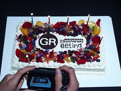 「GR」シリーズ誕生10周年のバースデーケーキ。GRでバースデーケーキを撮る参加者も