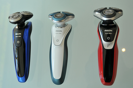 フィリップスの回転式シェーバー。左から9000、7000、5000シリーズ