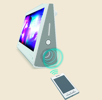 側面の大型スピーカーはBluetooth対応で、スマホと連携して音楽を楽しむこともできる