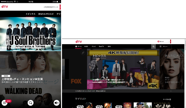 NTTドコモとエイベックス通信放送が運営する映像配信サービス「dTV」は11月25日、4Kコンテンツの配信を開始するとともに、チャンネル数を従来の14チャンネルから18チャンネルに拡大した。