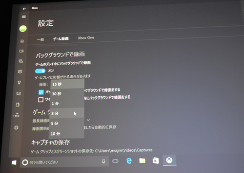 PCゲームだけではなく、家庭用ゲーム機、「Xbox One」との相性も抜群だ。Windows 10のXboxアプリを使うとXbox One ゲームをWindows 10搭載PCでプレイ可能。ワンタッチで動画や静止画のキャプチャをとることができる「Game DVR」機能を搭載した。さらに、動画をバッファリングし、15秒から最大10分まで過去にさかのぼって録画を行う「バックグラウンドで録画」機能も備え た。