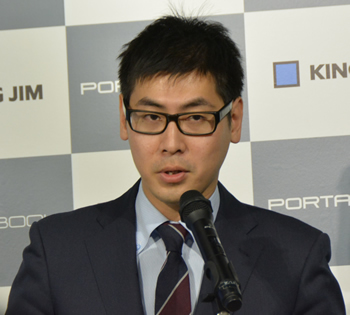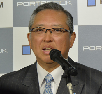 ポータブックでノートPC市場に挑む、と意気込みを語る宮本社長