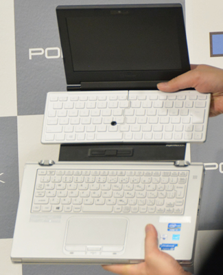 ノートPCとタブレットの中間のような製品を、と思って「ポータブック」を開発したと語る冨田氏