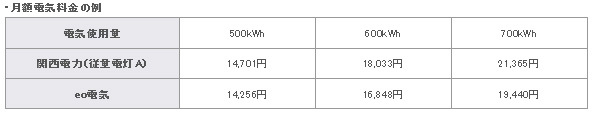 「eo電気スタート割」適用時の税込価格
