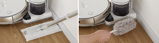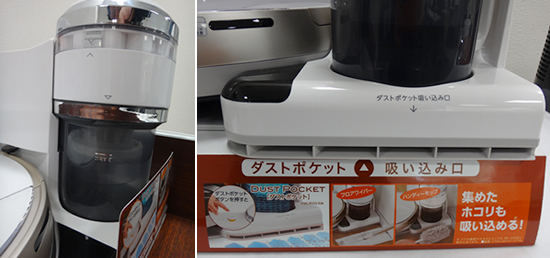 「ダストポケット」でフロアワイパー、ハンディモップなどで集めたゴミを吸引