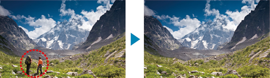 複数の写真を継ぎあわせてパノラマ写真を作成したり、人物写真の「しわ消し」や「スキンスムーサー」などの補正ツールも多彩だ。