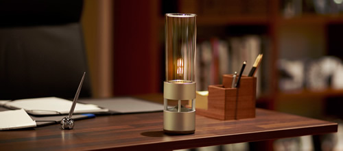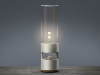 何よりも目を引くのはそのデザインで、包み込むような温かい光を放つフィラメント型LEDを採用。温かい光と透きとおる音でリラックス空間を演出する。
