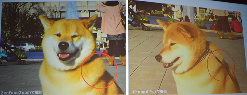 まるを撮影した写真の比較。(左)「ZenFone Zoom」(右)「iPhone 6 Plus」