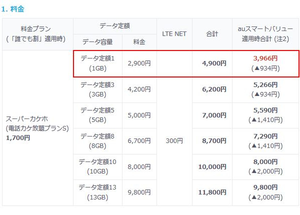 KDDI、月額4900円の低料金プランを導入、通信量上限は1GB