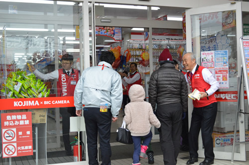 オープン直後。コジマの木村一義会長自ら、お客様をお出迎え