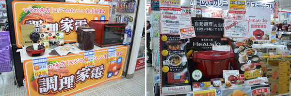 調理家電の実演コーナー。限られたスペースを効率的に利用