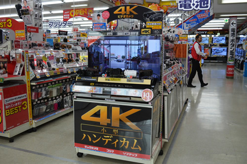 入店後すぐに目に入る4Kビデオカメラの展示