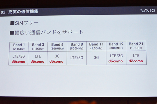 「VAIO Phone Biz」が対応する通信バンド