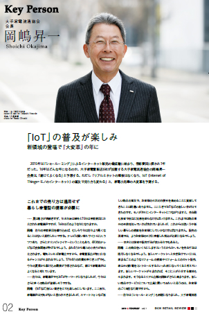 創刊号の「Key Person」のコーナーでは、大手家電流通協会の岡嶋昇一会長(エディオン・副会長)にご登場いただき、2016年の家電流通の展望について語っていた だきました。今後もおのコーナーでは、家電流通のトップや活躍している方々をインタビュー形式で紹介していきます。