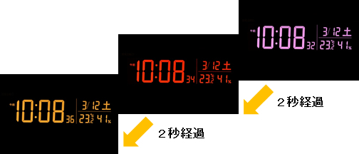 「C3」の最大の特徴は、時刻・カレンダー・温度・湿度を表示する文字色を自由自在に変更できること。公称では70色の切替えが可能だが、RGBで表現できる色ならば、どんな色も描写可能。実質、無限色の表現が可能といえるだろう。