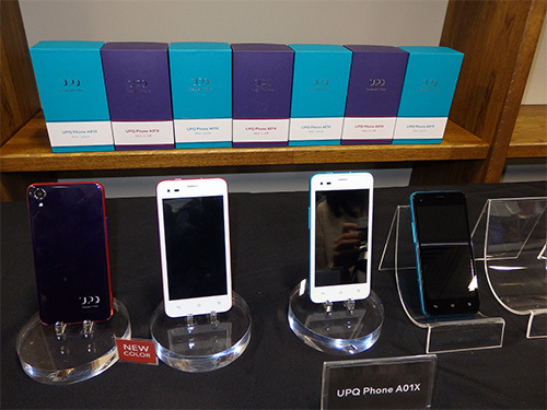 まずは、画面サイズが5インチのSIMロックフリースマートフォン(スマホ)「UPQ Phone A02」。メーカー希望小売価格は税別1万9,800円。Android 6.0を搭載し、カラーは「blue×green」と「navy & red」の2色で展開する。