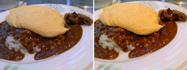 フードモードで撮影すると蛍光灯の青みが消え、よりおいしそうに見える