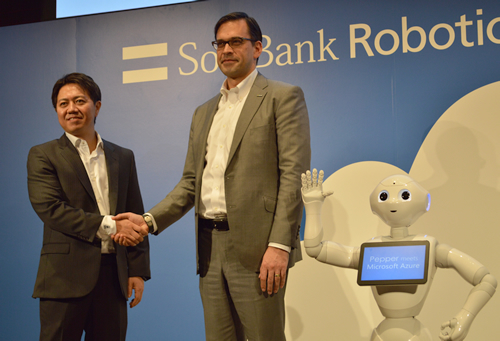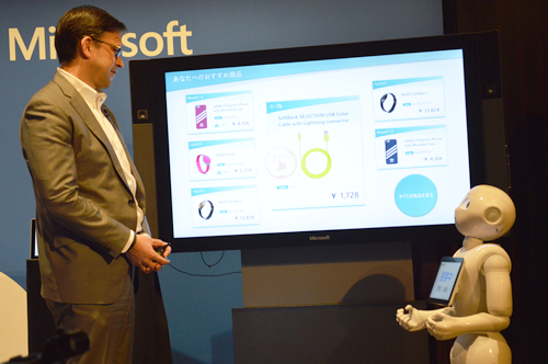ソフトバンク ロボティクスと日本マイクロソフトは、3月8日、クラウドロボティクス分野での戦略的協業を発表した。第一弾として、人型ロボット「Pepper」とクラ ウドプラットフォーム「Microsoft Azure」を活用した次世代型店舗ソリューション「未来の商品棚(仮)」を共同で構築する。