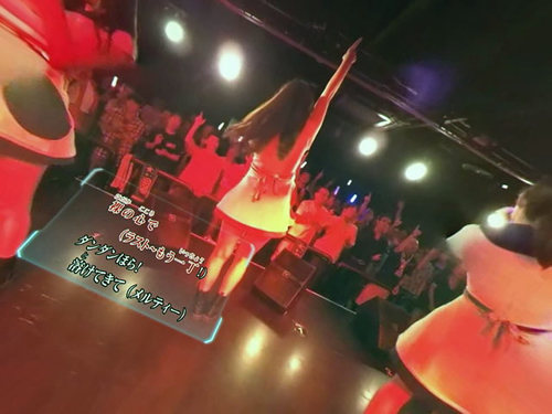 メンバーに交じってオンステージ、カラオケでおなじみの歌詞の表示も