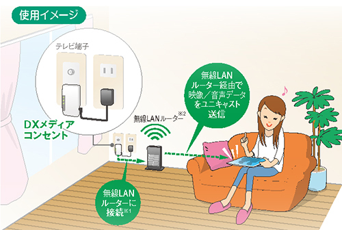 DXアンテナは3月30日、無線LANを通じてタブレット端末やスマートフォンから地上デジタル放送を楽しめる無線LANトランスミッター「DXメディ アコンセント」の先行販売を、NTT西日本が運営するショッピングサイトのWest-Vで開始した。価格はオープンで、West-Vでの税別価格は 8980円。販売先は、今夏以降に順次拡大していく。