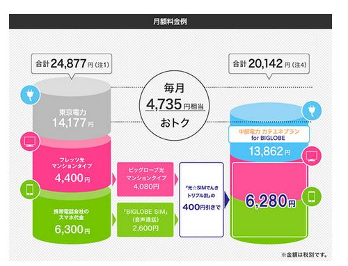 ビッグローブは、電力小売り全面自由化に伴い、BIGLOBE接続サービス利用者向けに電力サービスを案内する「ビッグローブでんき」を4月4日に開始 した。電力とBIGLOBEの光接続サービス、高速モバイル通信サービスをあわせて契約することで、月額料金が最大400円お得となるセット割も開始す る。