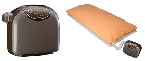 ふとん乾燥機「AD-X80」は、ふとんを包み込んで乾燥させる新形状の「ヒートパンチマット」を採用。表面だけでなく中綿まで温風を行き届かせ、表面を約60度、中綿を約55度に維持することで、ダニ対策に活用できる。まくら全体を包める専用の乾燥マットも付属する。