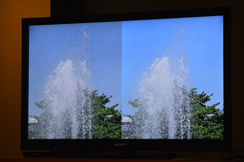 左が通常時、右が「TrueTheater」で高画質化した画面