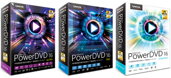 左から「PowerDVD 16 Ultra」「PowerDVD 16 Pro」「PowerDVD 16 Standard」