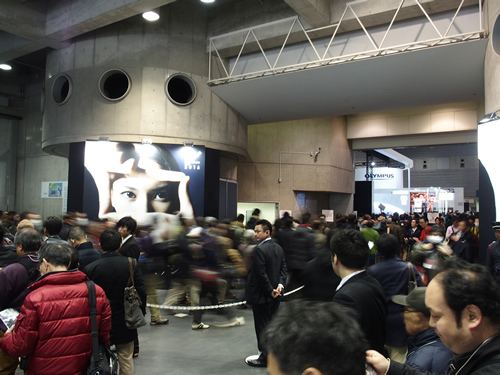 12時の開場と同時にどっと会場に流れ込む来場者。CP+2016では7万人の来場者を見込む