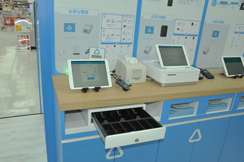 対応機器として、据え置きプリンタとキャッシュドロアをセットにした「Airレジ セット(Aセット)」を税抜4万4800円から販売する。4月19日に有楽町店で、20日に新宿東口店(ビックロ)、21日に赤坂見附駅店で取り扱いを開始し、今後はグループで郊外店が多いコジマまで拡大してくという。