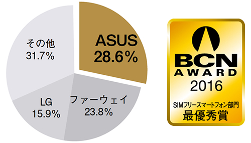 新設のSIMフリースマートフォン部門でBCN AWARDを獲得したのはASUS