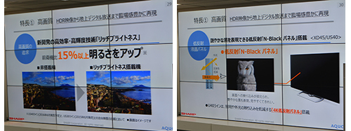 高画質化では、新開発の技術「リッチブライトネス」で消費電力を抑えながら明るさを高め、明暗部のはっきりした映像を再現。さらに、太陽や照明の光の映り込みを抑え、艶やかな黒を表現する「N-Blackパネル」を採用し、画像処理エンジンには、解像度や色域、輝度をコントロールして臨場感の高い映像を描写する「AQUOS 4K-Master Engine PRO Ⅱ」を備えた。