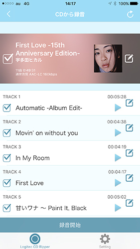 このほか、「LDR-PS8WU2V」は、音楽CDからスマホ/タブレットに直接音楽をリッピングすることが可能だ。その際はDVDの再生アプリ「Logitec Wireless DVD Player」ではなく、「Logitec CD Ripper」をインストールしよう。こちらも無料で手に入る。