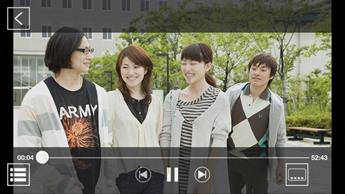 DVDの再生画面。画面をタップするとこのようにボタン類が表示される