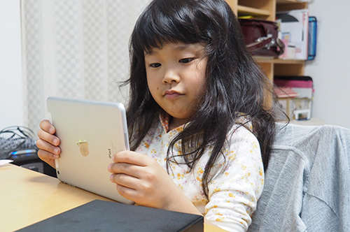 「DVDが見られるの?」とニコニコしながらタブレットを抱えていた娘。夢中で見始めた。