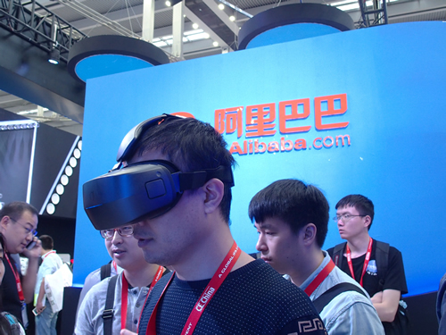 VRゴーグルなど最新機器を並べ、人目を引いていたアリババ