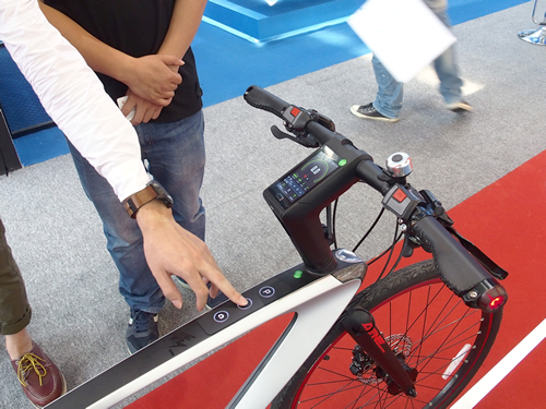 自転車関連と言えば、中国でスポーツ配信を行うLetv Sportsが開発したスマートバイクも出展された。内蔵するGPSを使ってハンドル中央に距離や速度などが表示されるばかりでなく、音楽を楽しみながら走ることもでき、内蔵カメラで写真を撮ることもできる。
