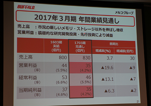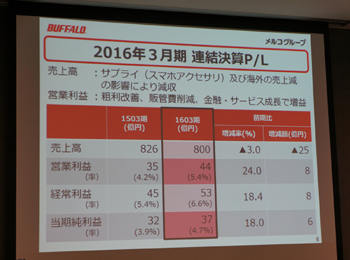 メルコ、2016年3月期決算は減収増益、ネットワークサービス事業拡大などで増収を目指す