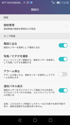 GR5最大の売りの機能が「指紋センサー2.0」。本製品にはフラッグシップ機であるMate Sと同じ第2世代の指紋認証センサーとソフトウェアが搭載されており、0.5秒の高速ロック解除はもちろんのこと、上下スワイプでの通知エリアの開閉、長 押しでの電話着信の応答、同じく長押しでのカメラシャッター操作など便利機能も利用できる。指紋認証システムを搭載したスマホが増えてきたが、セキュリ ティ向上のためだけでなく、使い勝手や操作性を向上させる機能を多数搭載している点で、GR5はほかの端末より一歩進んでいると言っていいだろう。
