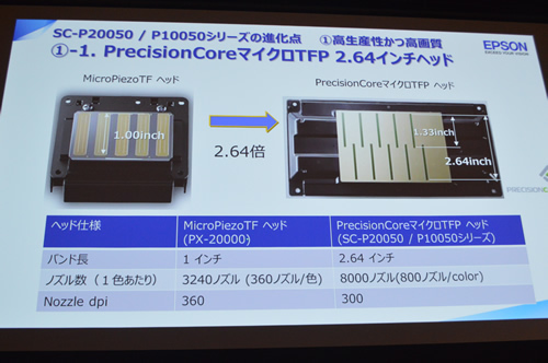 従来よりプリントヘッドが2.64倍大型化