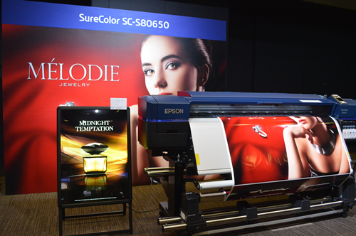 高画質モデル「SC-S80650」は、最大10色のインクを搭載することができる。ベースとなる9色にホワイトもしくはメタリックシルバーを加えることで、色味の美しさを引き立たせる。透過性の高いメディアにホワイトを加えると他のカラーの鮮やかさが増す。メタリックシルバーなら、金属をよりリアルに表現することが可能だ。プリントヘッドを2基搭載するので、高画質でありながら印刷速度は高速だ。