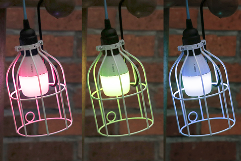 光学レンズグローブに乳白色拡散素材を採用することによって、まぶしさを抑えて光の自然な拡がりを実現するとともに、美しいカラー発光を可能にした。また、使用LEDを素子自体から見直し、LED配置などの光学設計を改善することで、従来機種「LSPX-100E26J」と比較して約1.4倍の全光束500lm(ルーメン)を実現した。さらに、光学レンズグローブの改善によって照射面に映るスピーカーの影を消した。