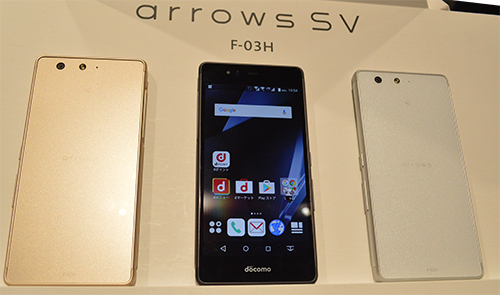 「arrows SV F-03H」は、使い心地と触り心地に注力。アルミフレームのボディにはハードアルマイト処理を、背面パネルには傷や指紋がつきにくいハードコート処理を施した。防水・防塵機能を搭載するだけでなく、落下時に画面が直接地面に触れないように画面の縁を立てるなど、安心して使用できる工夫を随所に盛り込んだ。