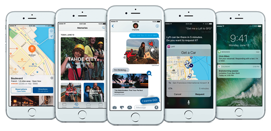 新たに、音声アシスタント機能「Siri」と連携するアプリケーションを開発できる「SiriKit」を提供する。マップ機能を他のアプリから利用可能にするほか、「写真」アプリではインテリジェント機能を利用して画像を分類・表示する「メモリー」機能、ホームアプリケーションによるHomeKit対応機器の管理、「Apple Music」のデザイン変更、セキュリティ強化などを行う。