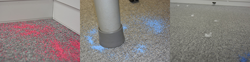 一方「ルンバ654」は、充電台に戻るまでに43分44秒かかった。何度も同じところを掃除していただけあり、掃除後の会議室はほとんどゴミが目立たなかった。壁ぎわにわずかなカラーサンドが残っていたが、ここはキャニスターでもノズルを使わないと取れなかったので、仕方がないといえるだろう。