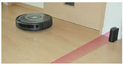 リビングとダイニング、キッチンがつながっているLDKでは、リビングを掃除するつもりでもキッチンまでルンバが侵入してしまう。調理中にルンバがキッチンに入ってしまうと、足下が非常に危なっかしい。そこで、キッチンの入り口に「オートバーチャルウォール」を置き、見えない壁でルンバの侵入を回避する。
