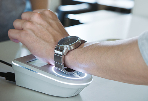 腕時計をかざすだけでおサイフケータイ機能を利用できる