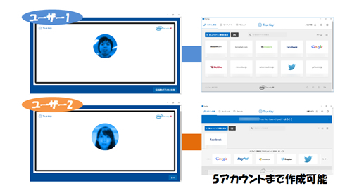家族共有のPCでも、5人までなら「True Key」の使い分けができる
