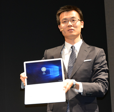 端末統括本部 プロダクトソリューション統括部 本部長のコリン・コン氏が「MateBook」をお披露目